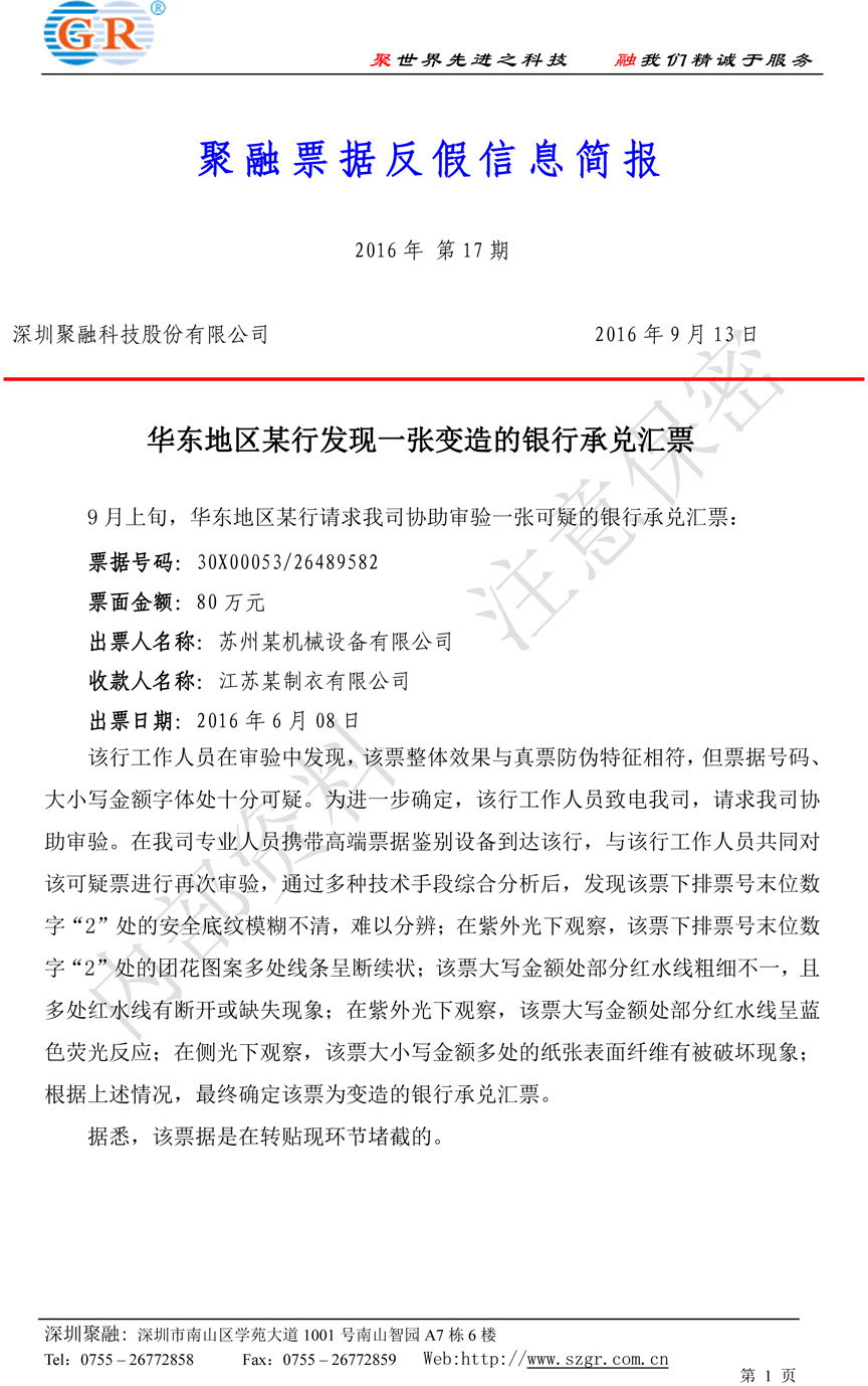 您當前所在位置: 首頁 聚融e訊 案例簡報 反假簡報 華東地區某行發現一張變造的銀行承兌匯票
