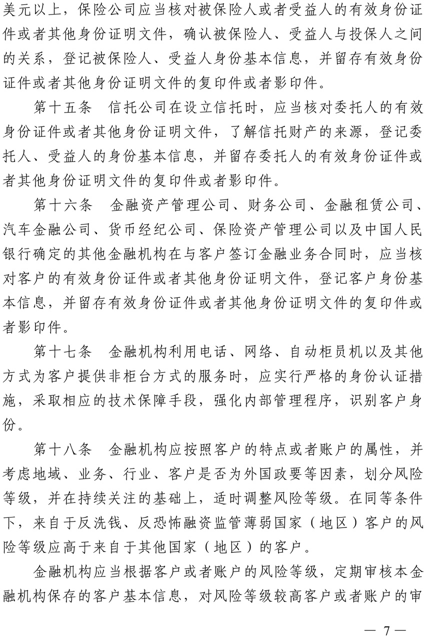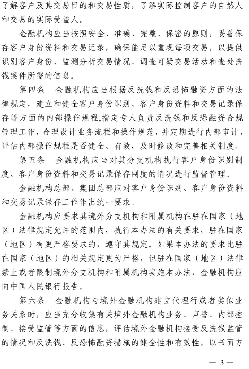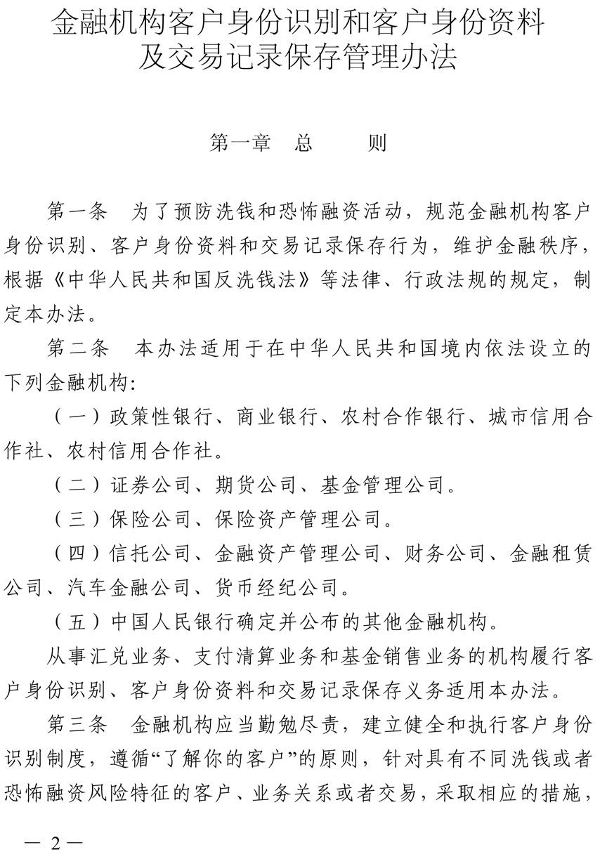 《金融機(jī)構(gòu)客戶身份識(shí)別和客戶身份資料及交易記錄保存管理辦法》