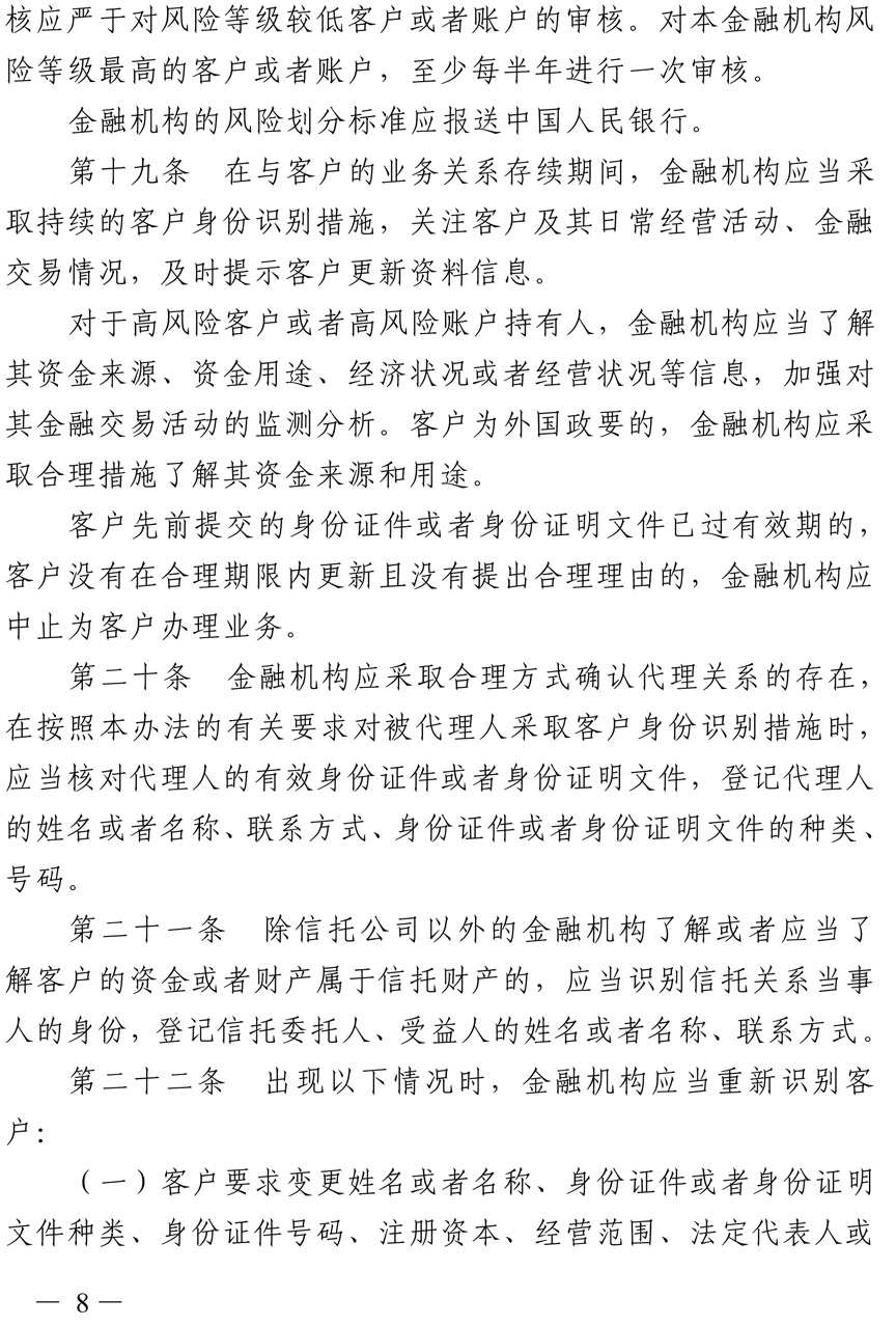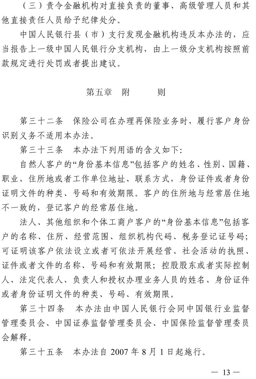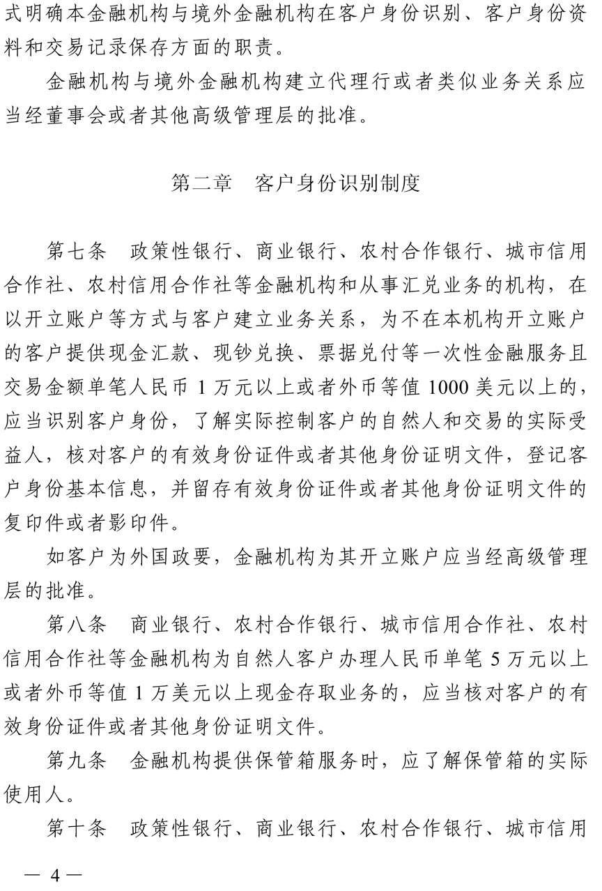 《金融機(jī)構(gòu)客戶身份識(shí)別和客戶身份資料及交易記錄保存管理辦法》