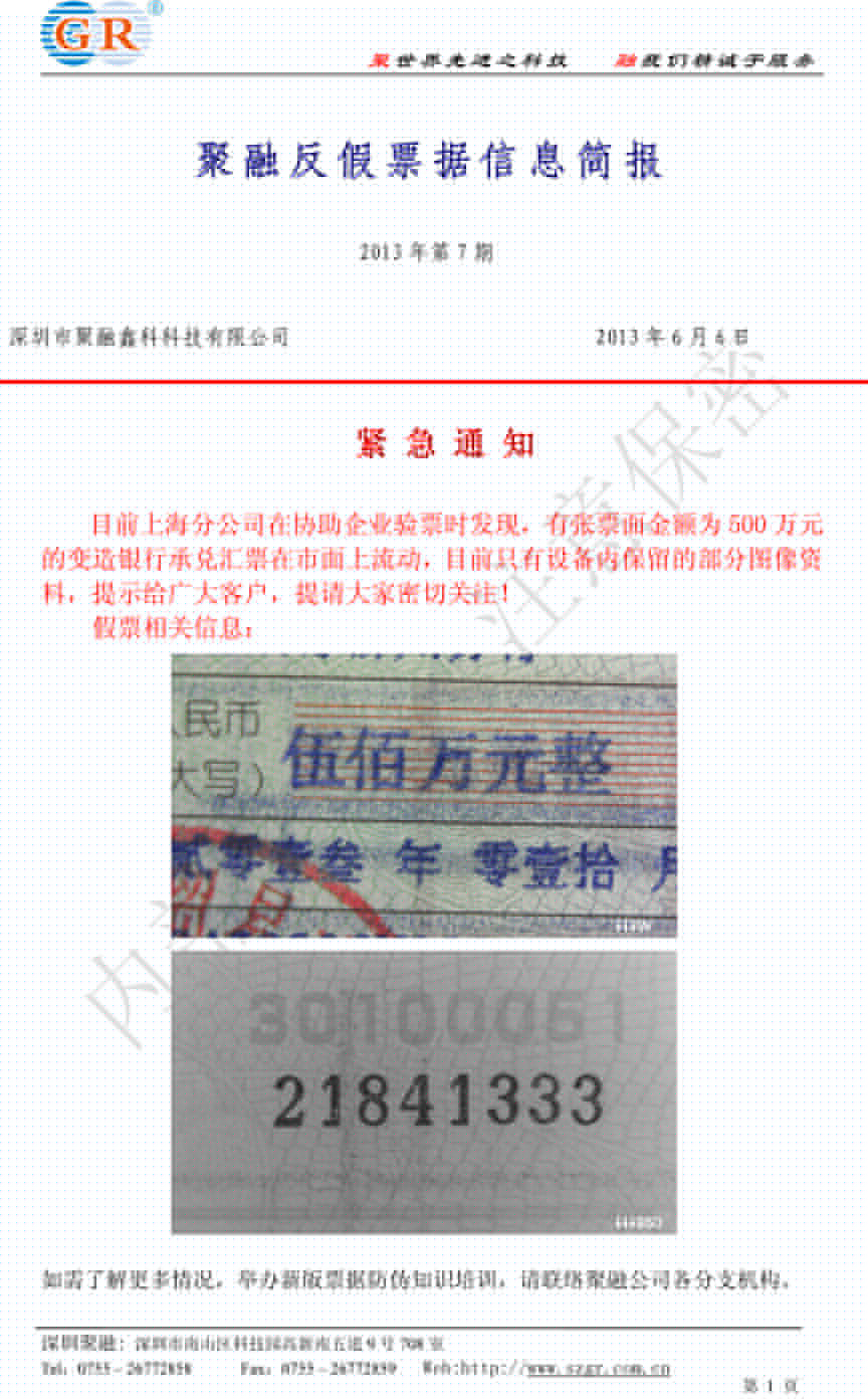 您當前所在位置: 首頁 聚融e訊 案例簡報 反假簡報 上海發現一張變造承兌匯票
