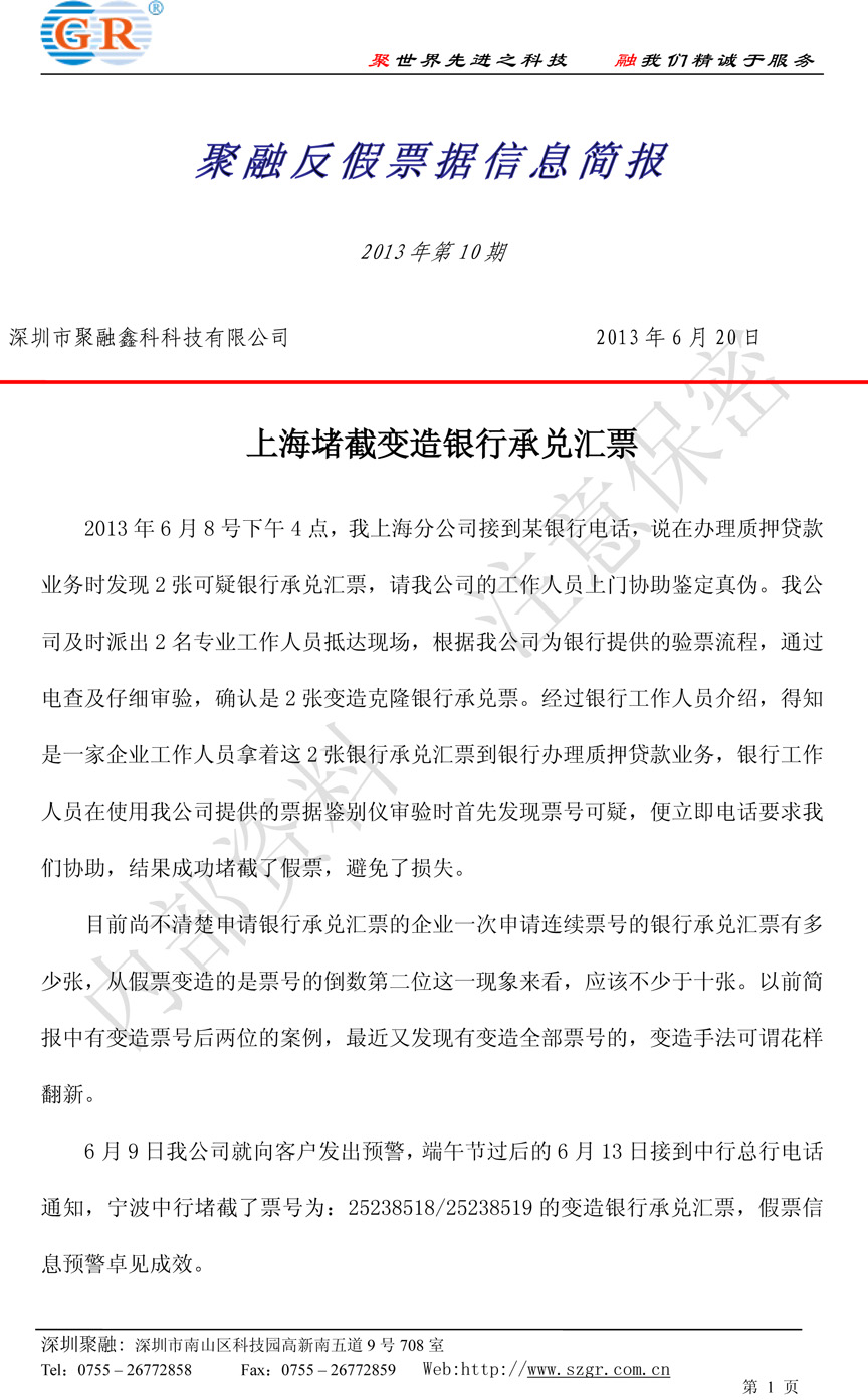 您當前所在位置: 首頁 聚融e訊 案例簡報 反假簡報 上海堵截變造銀行承兌匯票