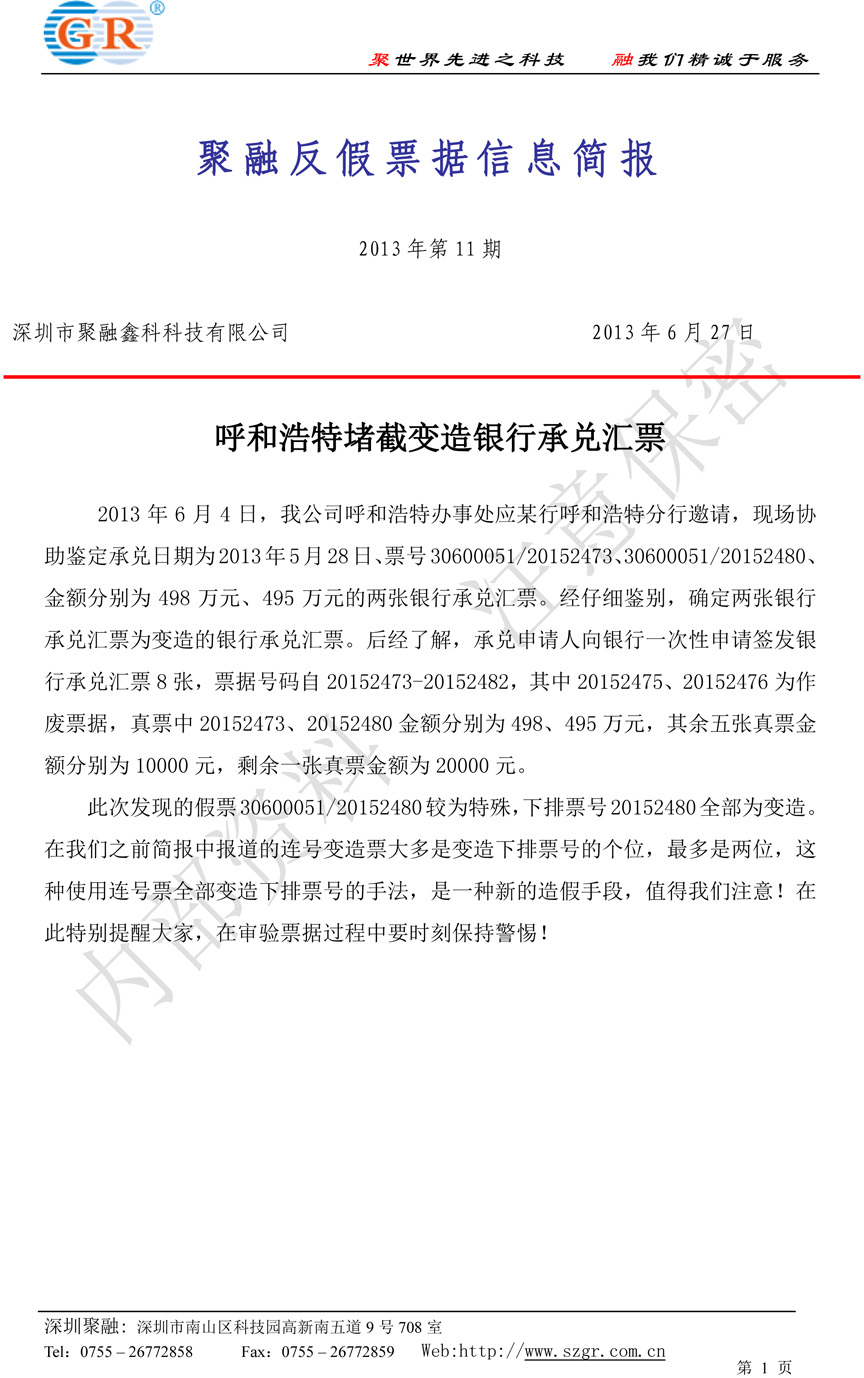 您當前所在位置: 首頁 聚融e訊 案例簡報 反假簡報 呼和浩特堵截變造銀行承兌匯票