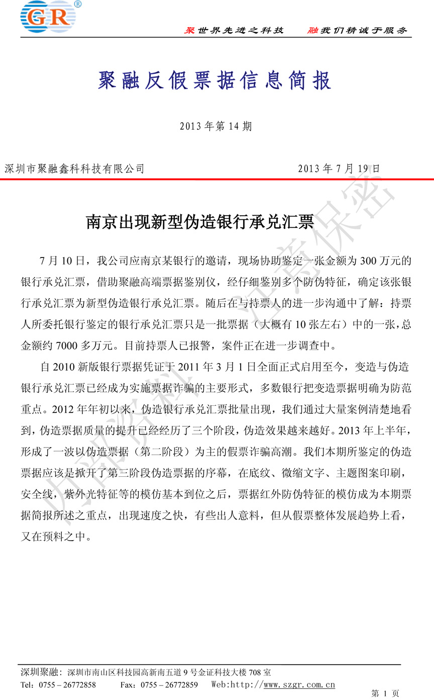 南京出現新型偽造銀行承兌匯票
