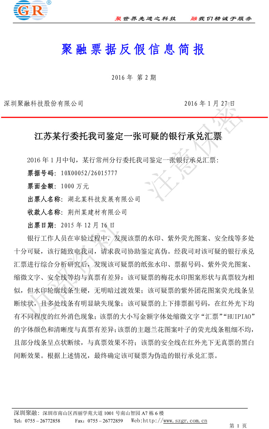 您當前所在位置: 首頁 聚融e訊 案例簡報 反假簡報 江蘇某行委托我司鑒定一張可疑的銀行承兌匯票