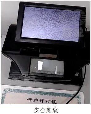 柜面風(fēng)險:【開戶許可證】正反面信息有紅色熒光反應(yīng)