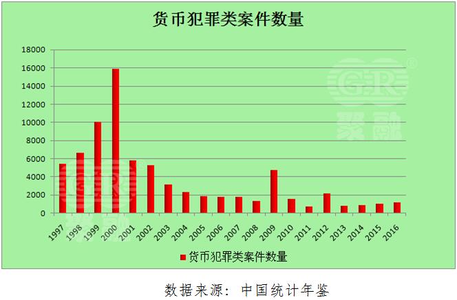 根據(jù)中國(guó)統(tǒng)計(jì)年鑒數(shù)據(jù)顯示,在2000年前后假幣案件再次呈現(xiàn)高發(fā)期。隨著第五套人民幣發(fā)行流通,防偽技術(shù)的提高,假幣案件逐步下降。