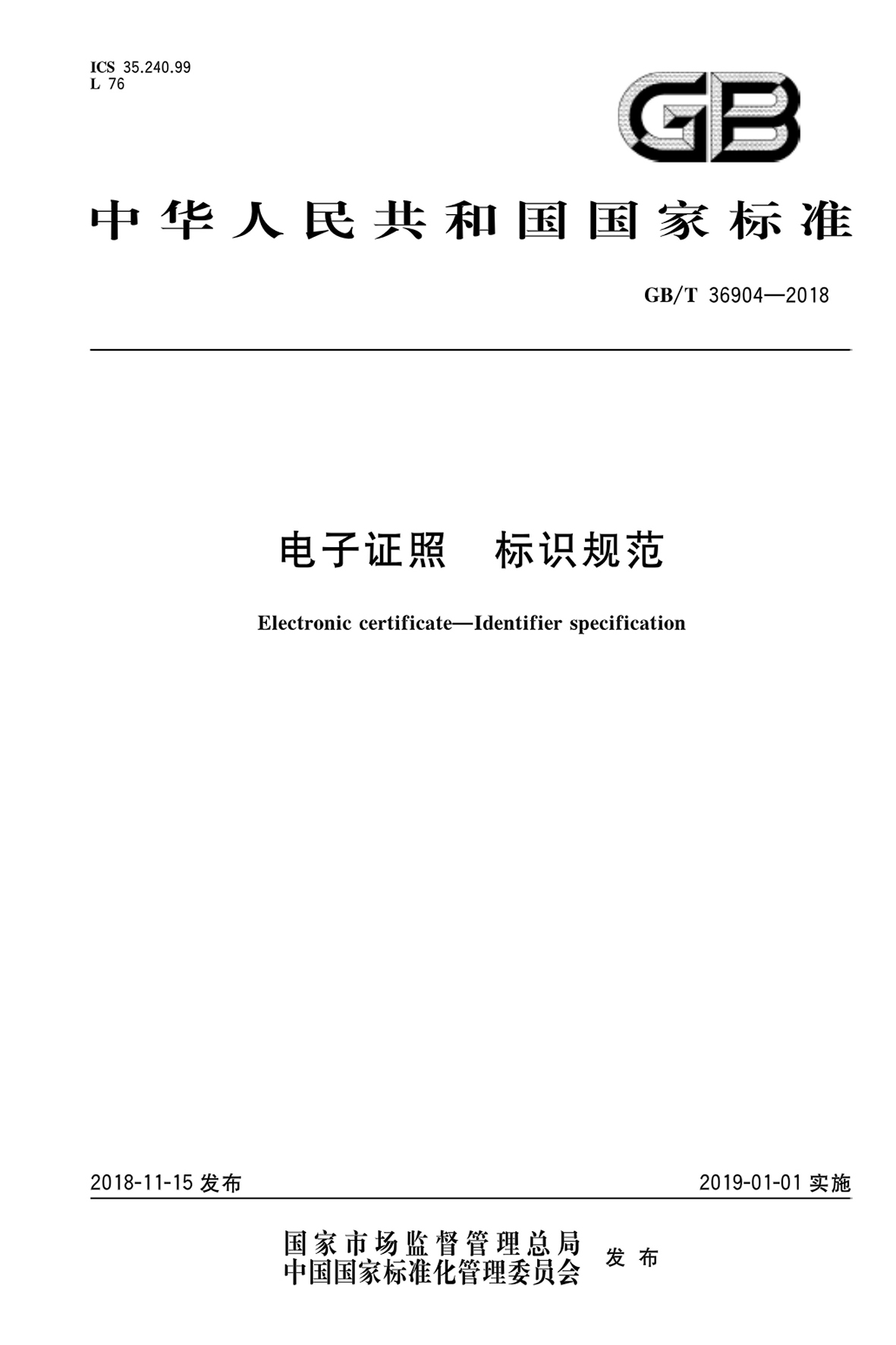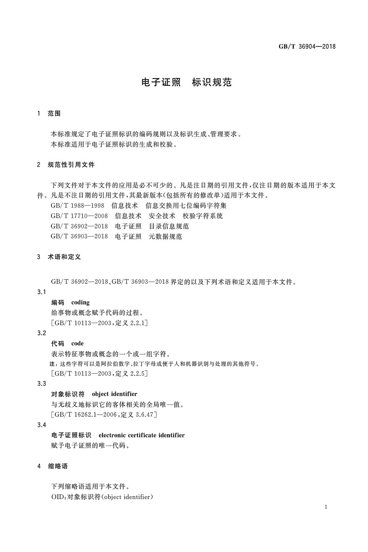 GBT 36904-2018 電子證照 標(biāo)識(shí)規(guī)范