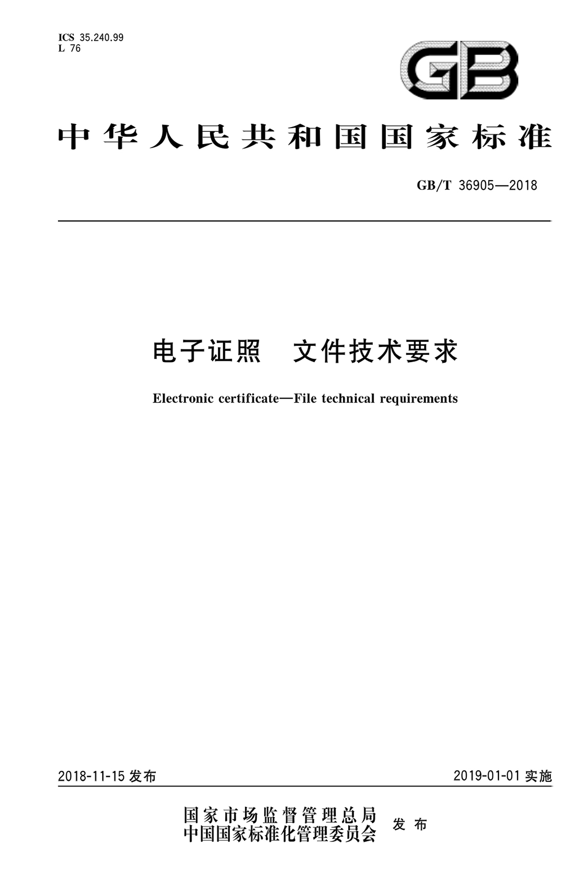 GBT 36905-2018 電子證照 文件技術(shù)要求
