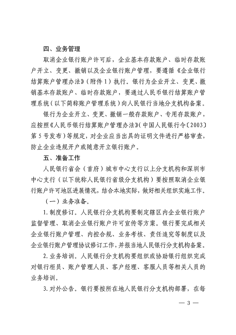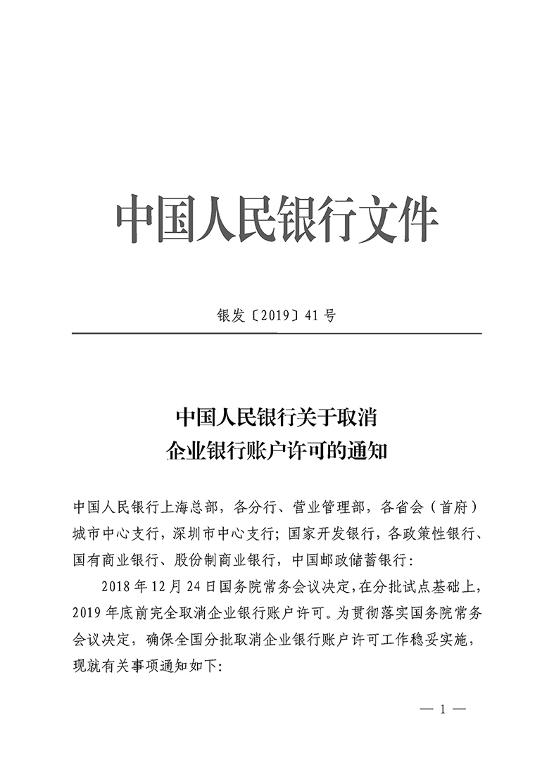 中國人民銀行關于取消企業銀行賬戶許可的通知
