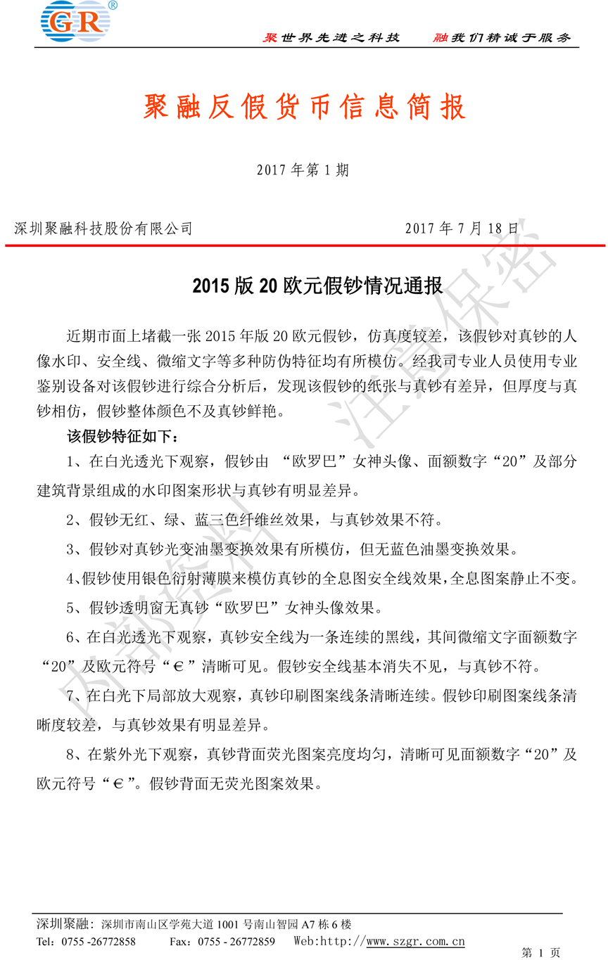 您當(dāng)前所在位置: 首頁 聚融e訊 案例簡報(bào) 反假簡報(bào) 2015版20歐元假鈔情況通報(bào)