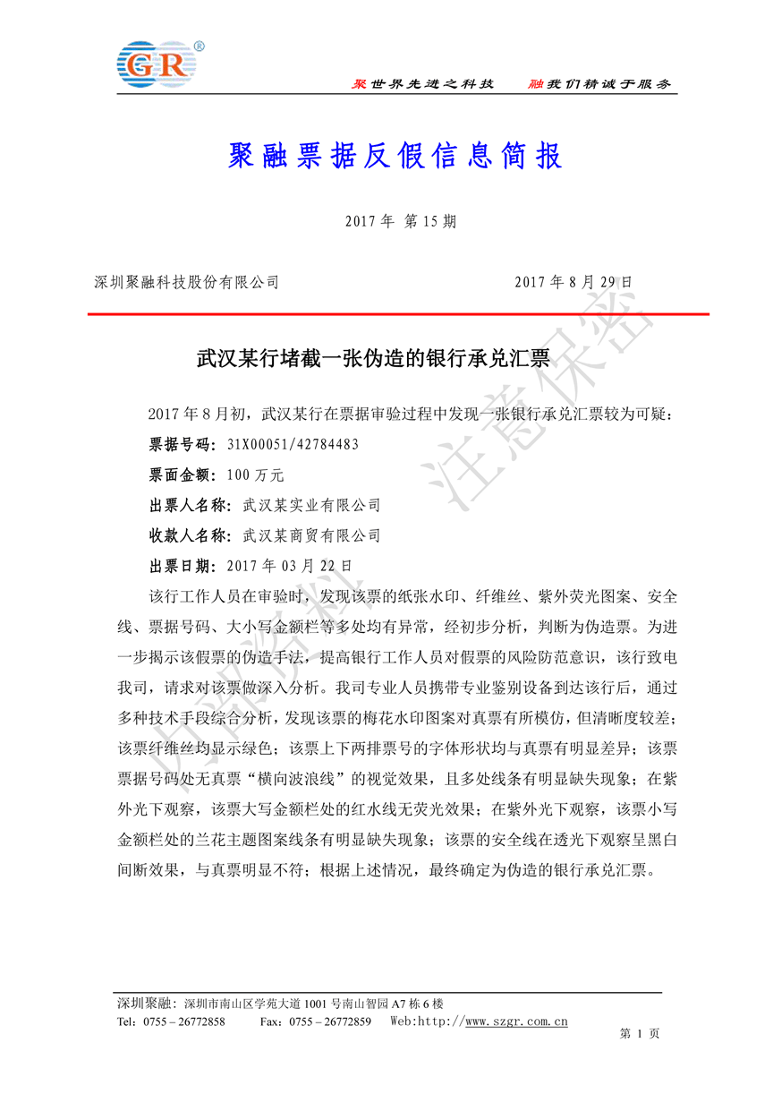 您當(dāng)前所在位置: 首頁 聚融e訊 案例簡報 反假簡報 武漢某行堵截一張偽造銀行承兌匯票