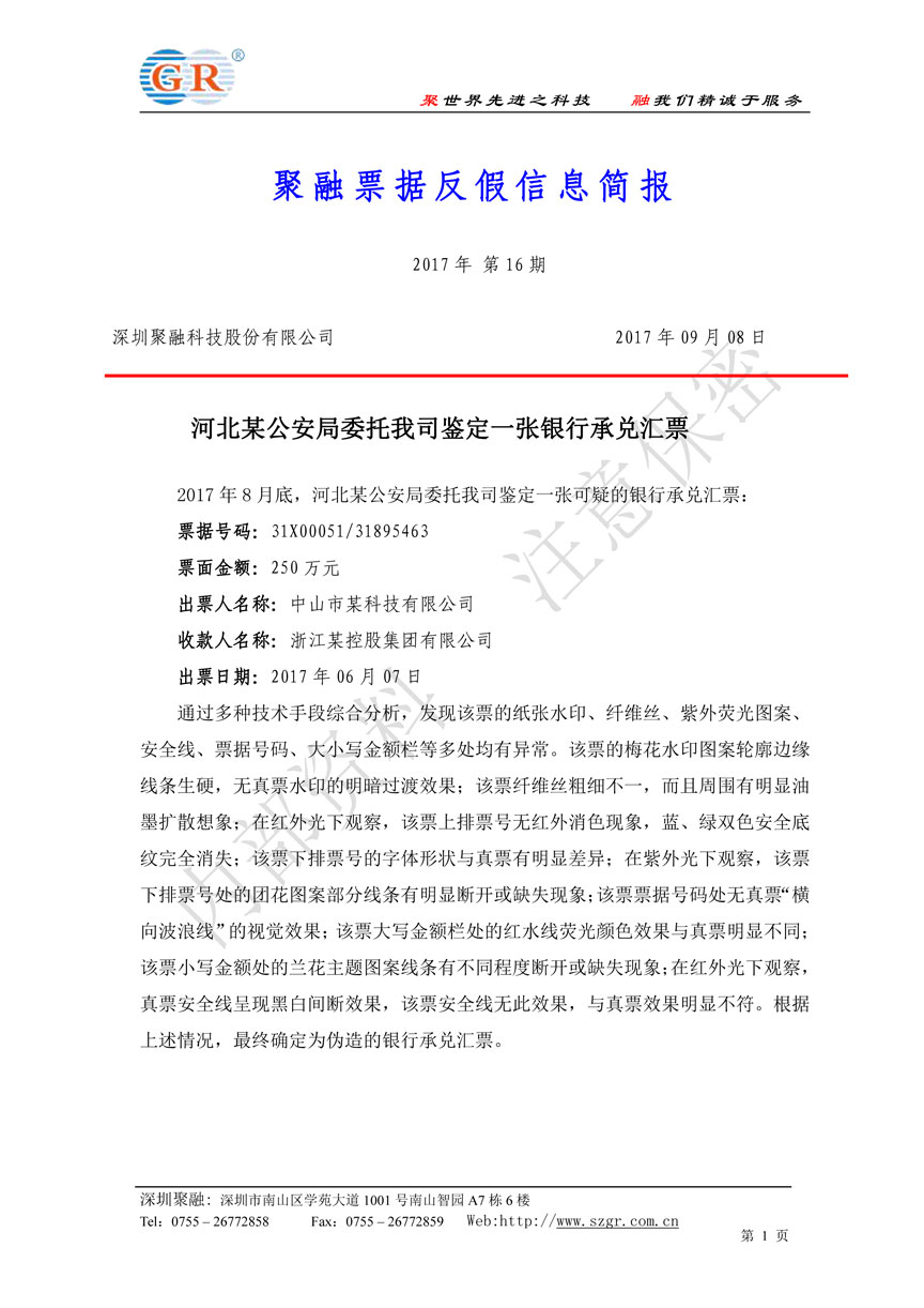 您當(dāng)前所在位置: 首頁 聚融e訊 案例簡報(bào) 反假簡報(bào) 河北某公安局委托我司鑒定一張銀行承兌匯票