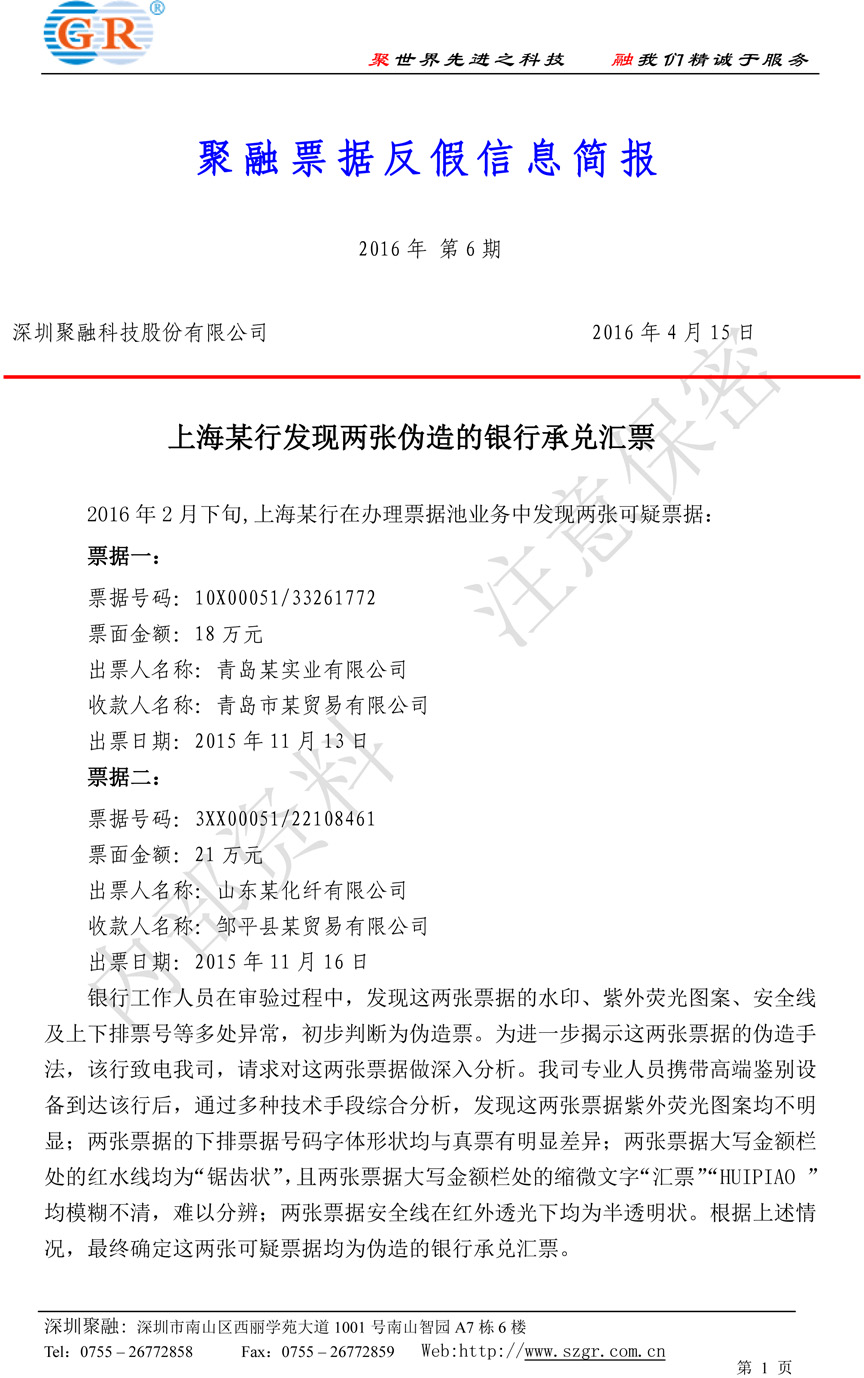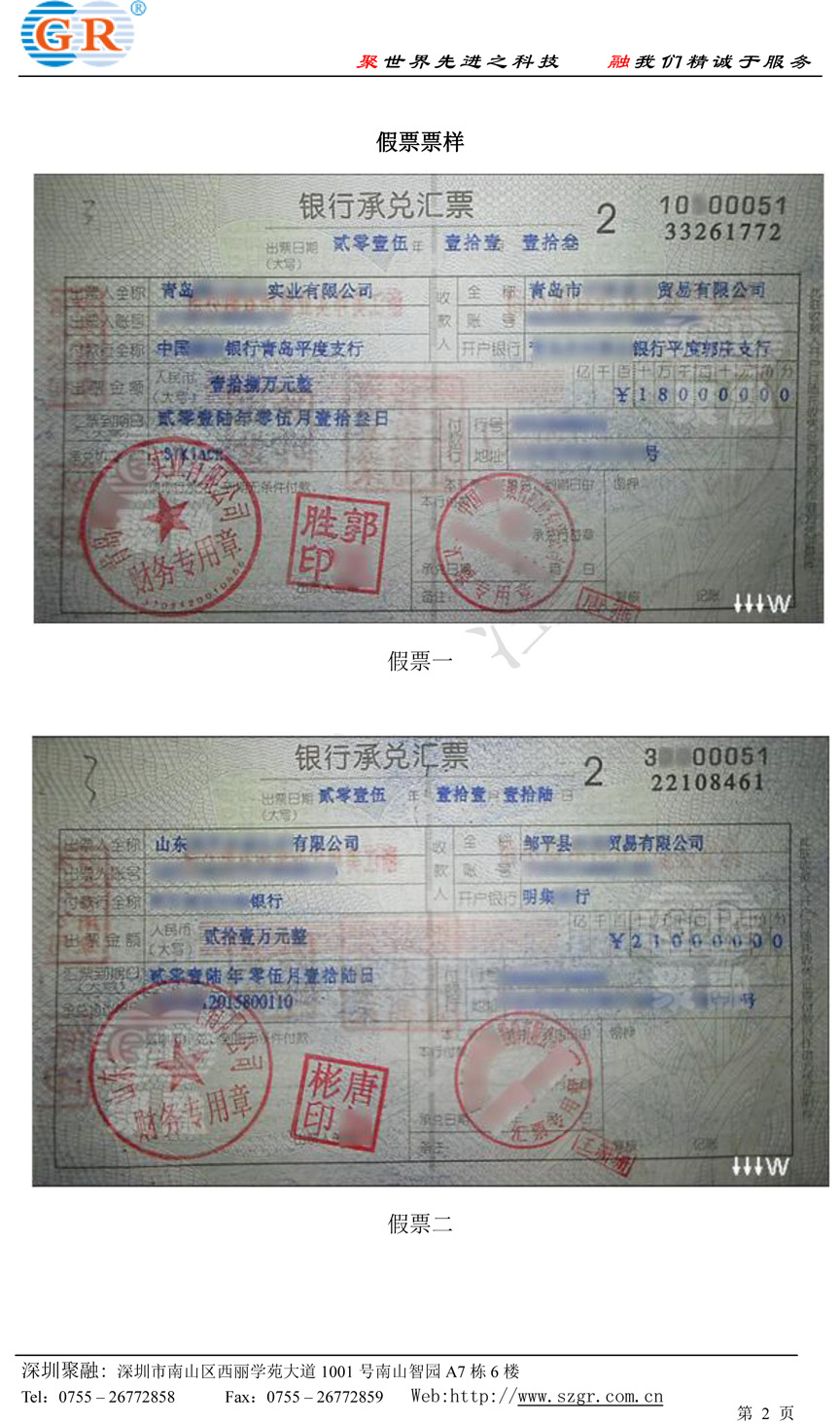 您當前所在位置: 首頁 聚融e訊 案例簡報 反假簡報 上海某行發現兩張偽造的銀行承兌匯票