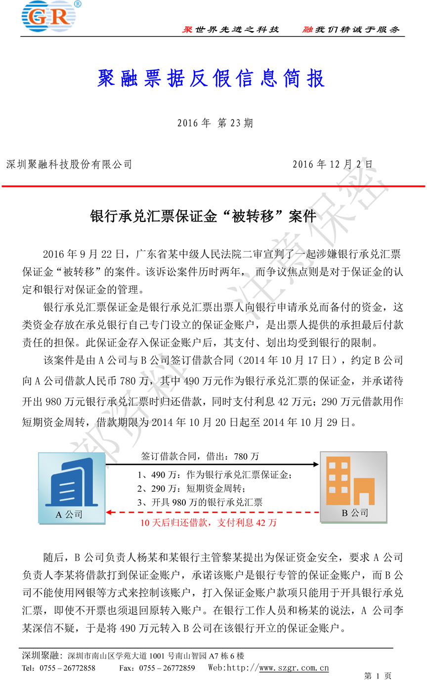 您當前所在位置: 首頁 聚融e訊 案例簡報 反假簡報 銀行承兌匯票保證金“被轉移”案件