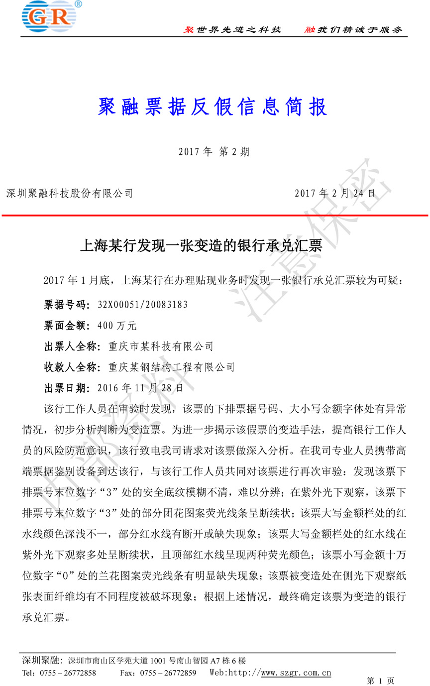 您當前所在位置: 首頁 聚融e訊 案例簡報 反假簡報 上海某行發現一張變造的銀行承兌匯票