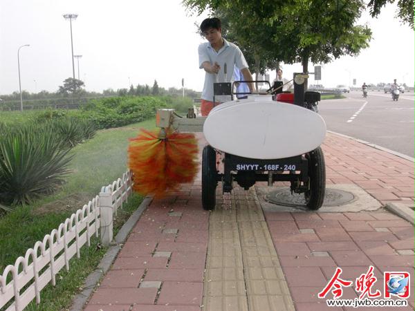 記者昨天在北辰區(qū)普濟河?xùn)|道看到,環(huán)衛(wèi)工人正在使用一種新型清洗車對人行道綠化帶的低矮護欄進行清洗,這種車輛車型小巧,只需一名環(huán)衛(wèi)工人就可以操作,短短幾分鐘這輛車就清洗了近百米的小護欄,和以前相比大大提高了清洗效率。